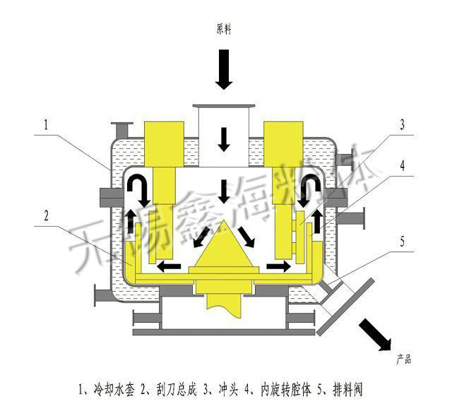 此設備主要是針對電池行業(yè)設備,上進料口(負極材料、導電劑、粘接劑、電解質)經機械融合及高精密混合處理,構成不同材料成分的分布,提高產品材料的利用率,構成不同材料的成分顆粒之間的復合化,降低產品的BET比面積,讓產品顆粒以高密度填充;將納米級粉末包覆在微米級的顆粒上,從而改進粉體的許多物理,化學特性。機械融合設備就是基于此原理開發(fā)的。物料在轉子中高速旋轉,在離心力的作用下緊貼器壁,在轉子和定子擠壓頭之間高速穿過。在這個瞬間,物料同時受到擠壓力和剪切力的作用,由于高速旋轉,物料在轉子和定子之間循環(huán)往復,不斷地受到擠壓力和剪切力的作用,在摩擦力的作用下顆粒表面達到一種機械熔融狀態(tài),從而將納米級的超細粉末包覆在微米級的顆粒上。